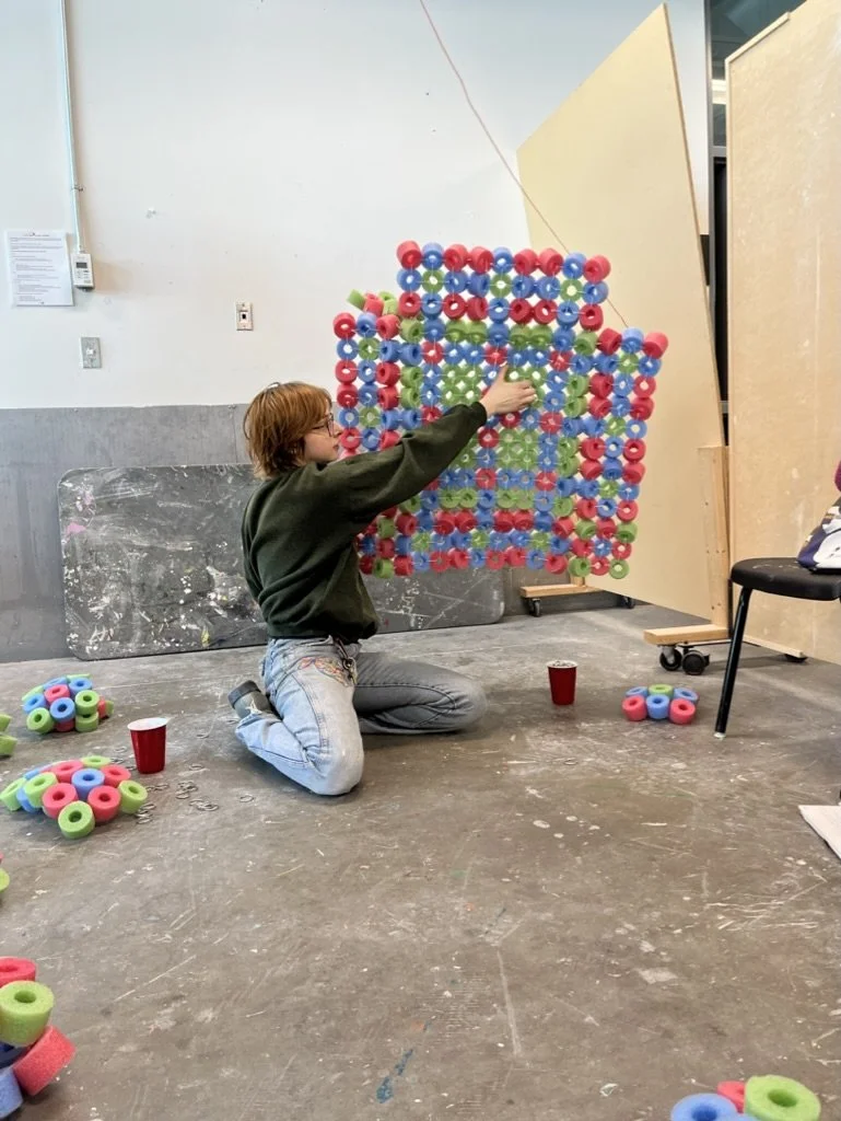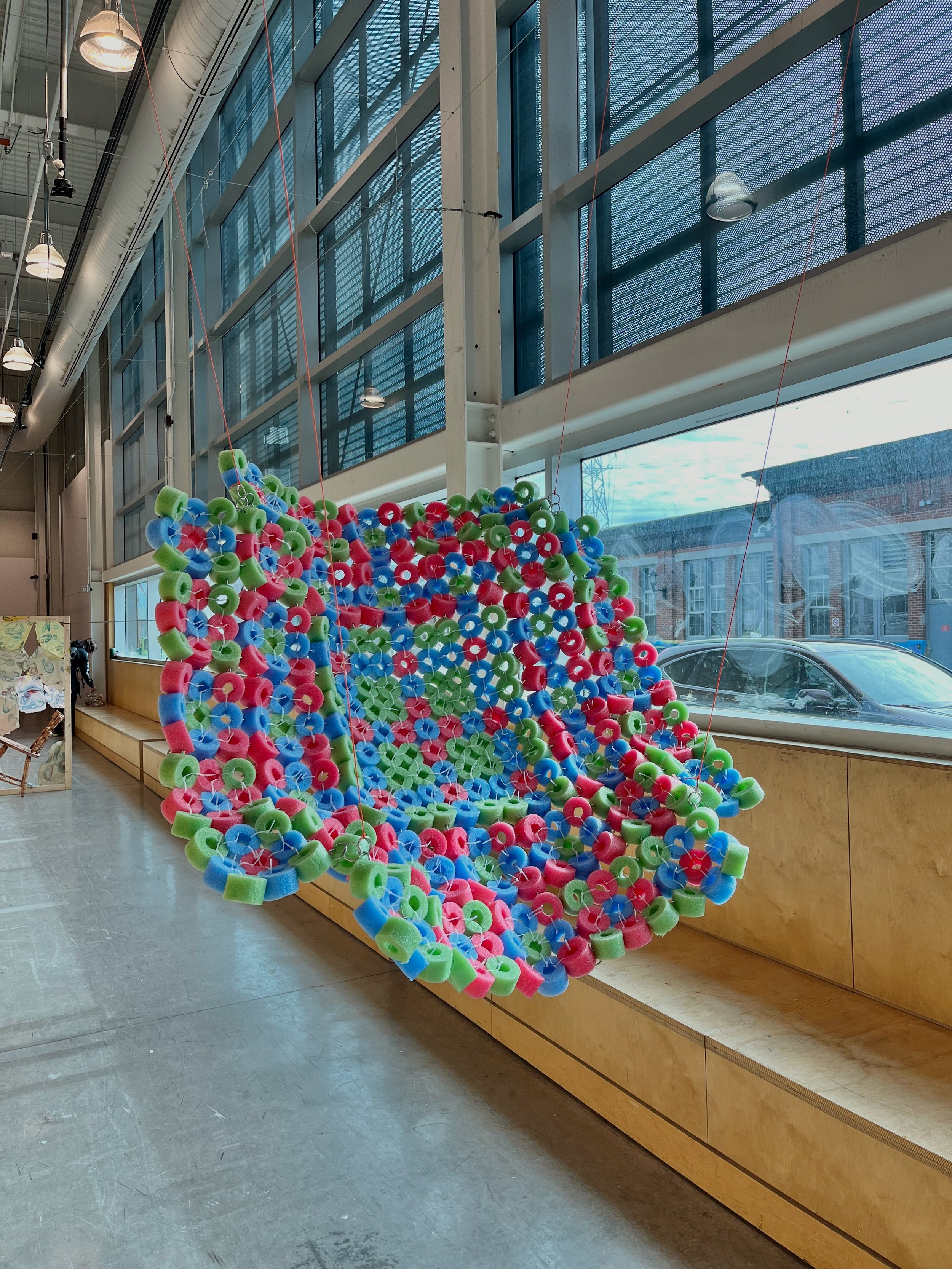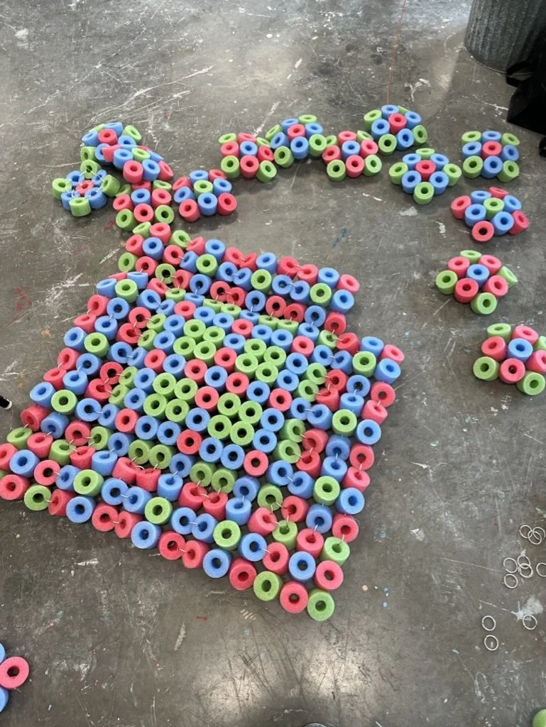 Ward Crawford, Ella. Pool Noodles/Soft Launch. 2025. Pool noodles, aluminum rings, zip ties. NSCAD University, Halifax, Nova Scotia.